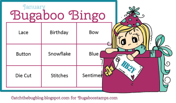Awww I have this image and haven't used it yet, I love the colours you used! Thanks for joining us for Catch the Bug's bingo challenge I hope you join us for our Birthday Bash too! Bugaboo DT.